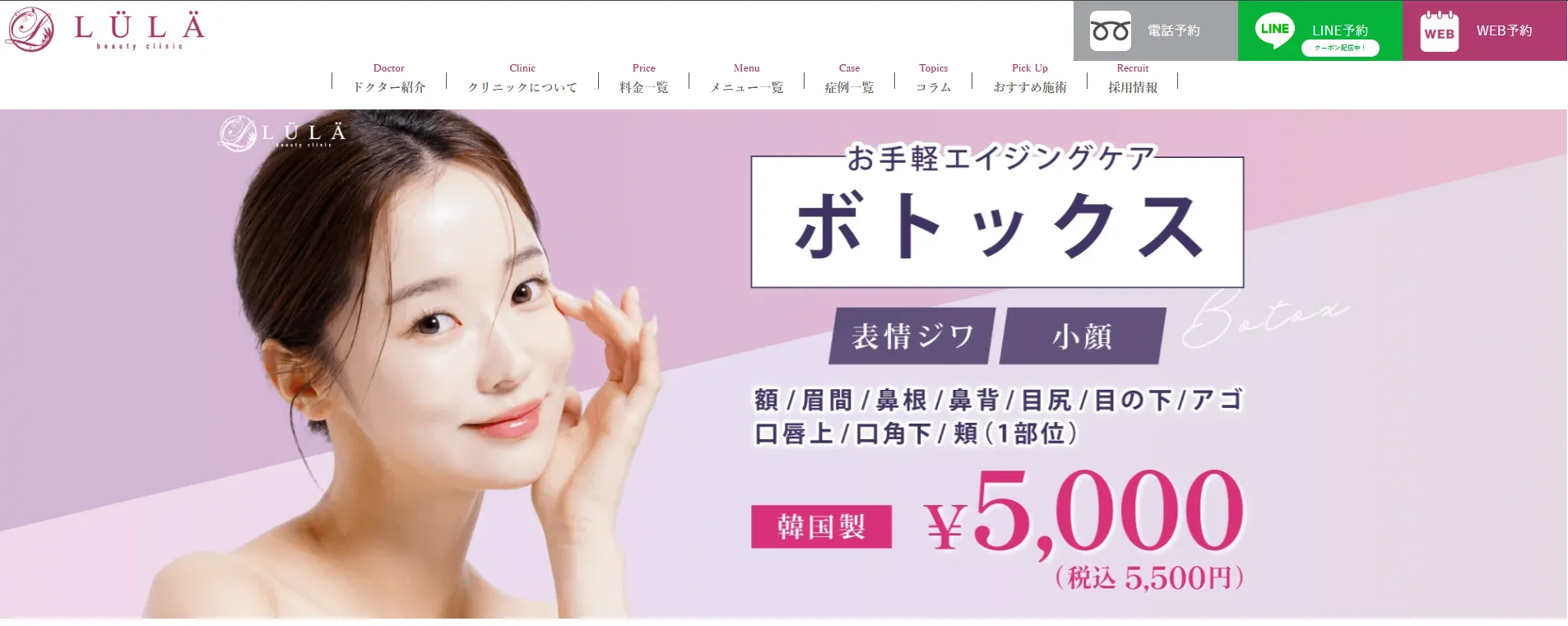 ルラ(LULA)美容クリニックのおすすめボトックスメニュー